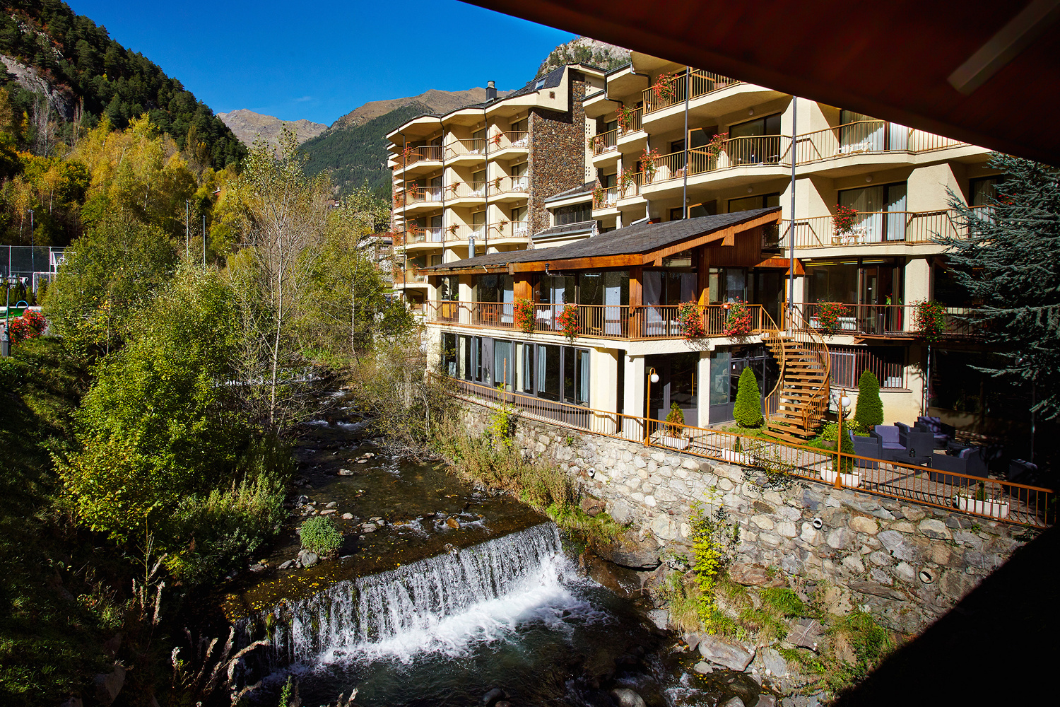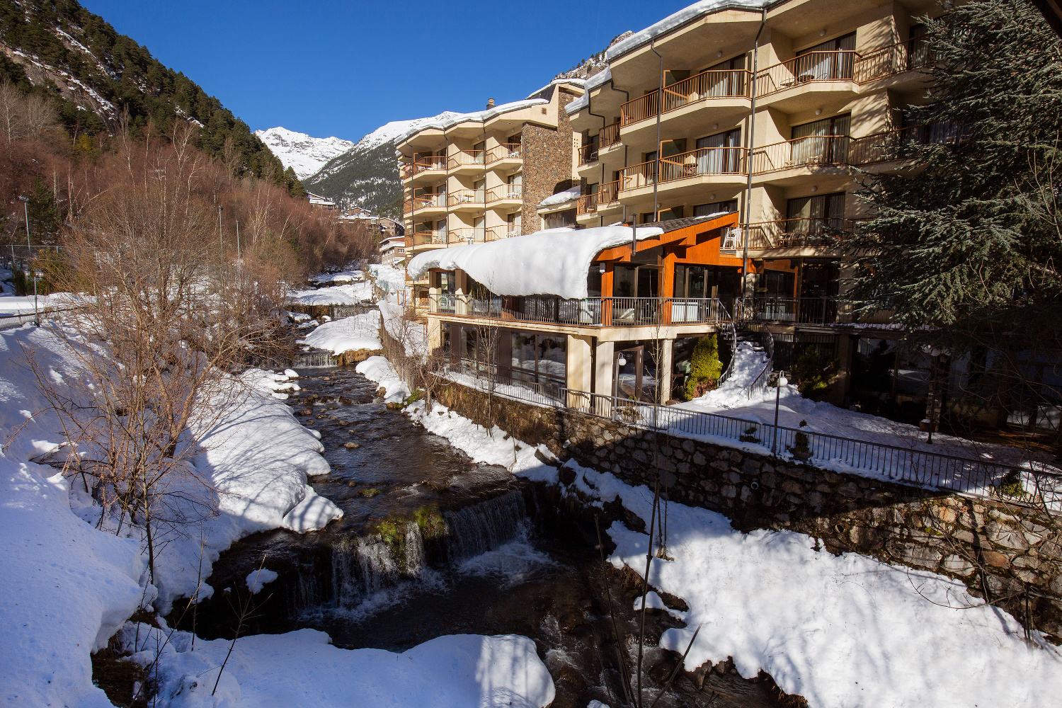 The Hotel Sant Gothard is a lovely 4-star hotel located in Arinsal (La Massana), just 1km from the cable car that takes you to the Pal-Arinsal ski resort. It is the perfect place to enjoy a ski holiday in winter and explore the mountains in summer, as it is surrounded by the Comapedrosa Natural Park. Situated at 1,400 meters above sea level, it offers stunning views of the Arinsal river and the surrounding mountains. Additionally, it has a spa with sauna and hot tub, and a seasonal outdoor pool.