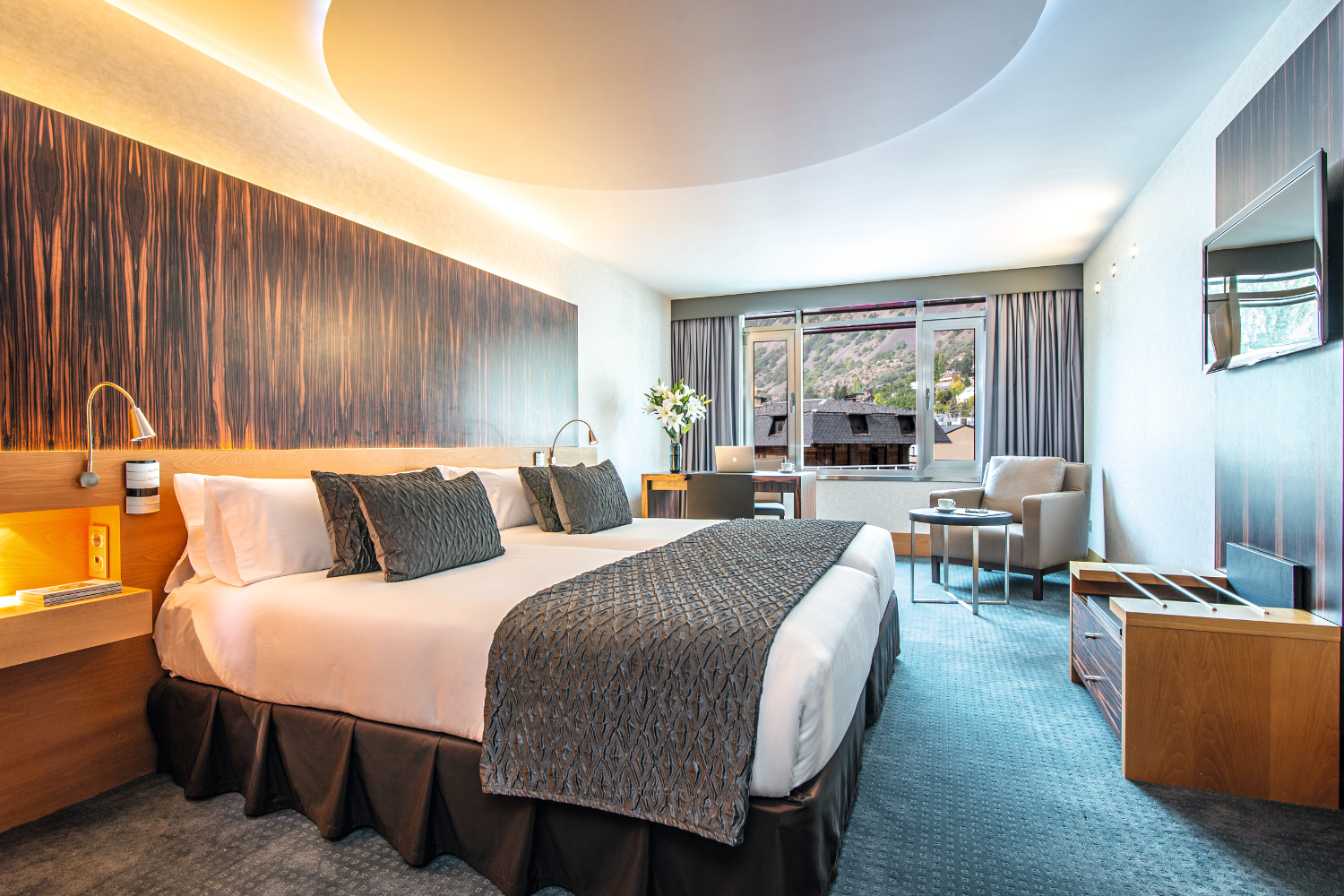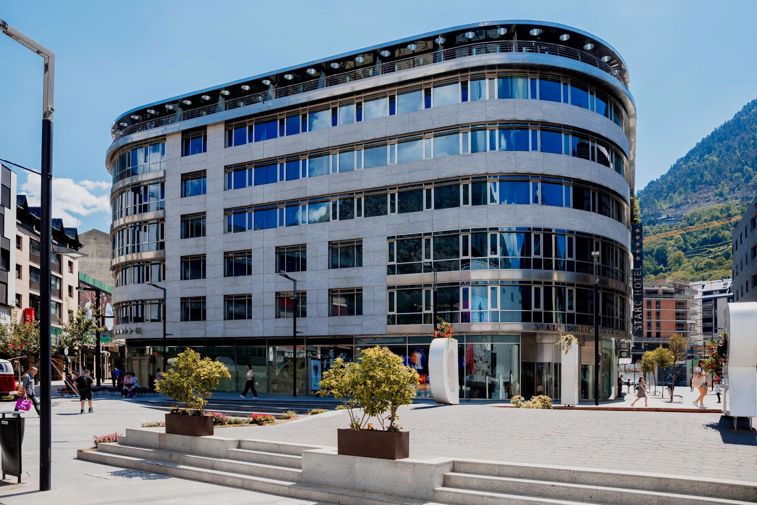 El Hotel Starc está ubicado en la emblemática Avenida Meritxell, en el corazón de Andorra la Vella. Su diseño contemporáneo, unido a la calidez de sus espacios, crea un ambiente exclusivo donde el bienestar y la elegancia se encuentran en perfecta armonía. Gracias a su ubicación privilegiada, el hotel permite disfrutar plenamente de la vida urbana. Las habitaciones son amplias, luminosas y están cuidadosamente equipadas. Ofrecen vistas espectaculares al corazón de la ciudad y disponen de todo lo necesario para una estancia inolvidable. Cada habitación cuenta con un jacuzzi privado y una ducha efecto lluvia, pensadas para proporcionar una experiencia de relajación absoluta después de un día de compras o de actividades al aire libre.