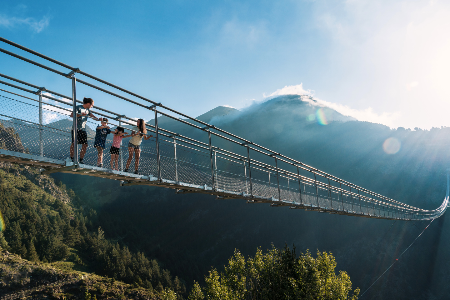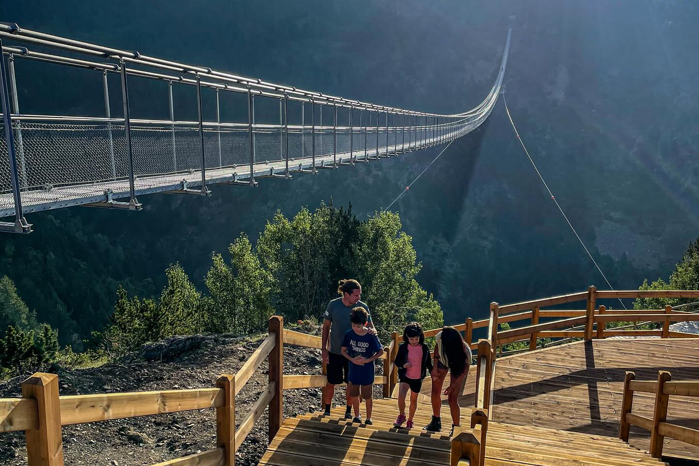 Descubra la magia de Andorra a través de un exclusivo pack que combina una estancia en uno de nuestros acogedores hoteles con la experiencia única de cruzar el Puente Tibetano de Canillo y contemplar el impresionante Mirador del Roc del Quer. El Puente Tibetano, suspendido a más de 1.875 metros de altitud y con 603 metros de longitud, es el segundo más largo del mundo, ¡prometiendo vistas espectaculares del Valle del Riu que dejarán sin aliento a los visitantes!